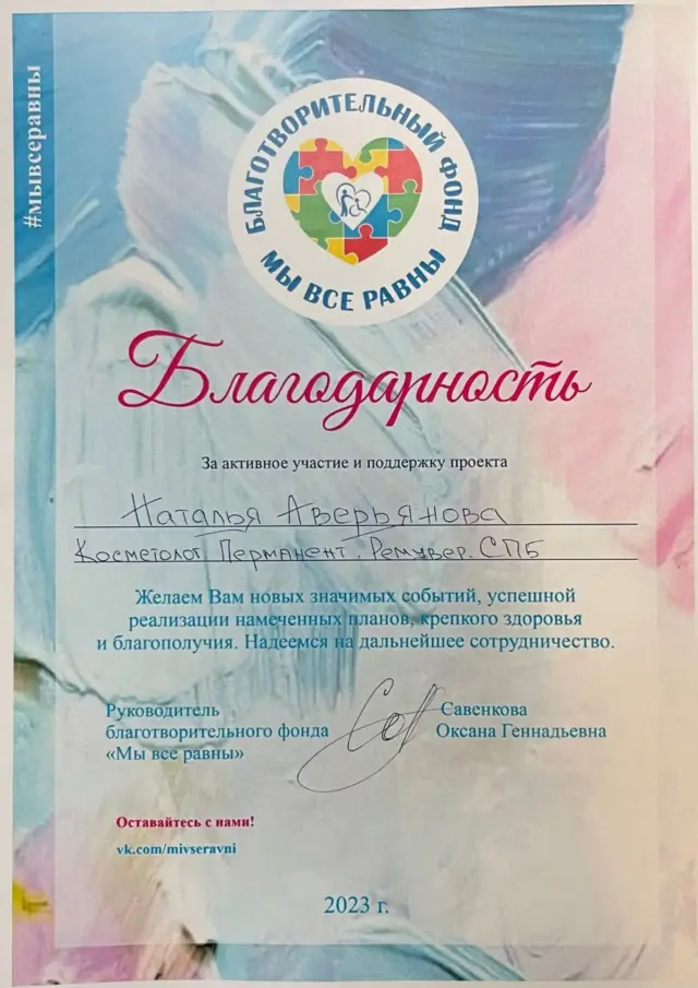 Участник мероприятий благотворительного фонда «Мы все равны»